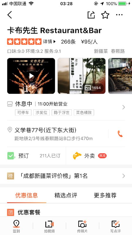 #东面 #春熙路 #新疆菜 义学巷路边的一家店,距离东大街很近。是家披着酒吧外衣的地道新疆菜馆。主推他家羊肉抓饭,除了长相一般以外,香、味兼具!有孜然但是丝毫不会其他食材口感。一口下去就爱上,简直好吃的哭😭;如果点了羊排,要趁热吃,肉不膻,烤的很嫩,唯一一个缺点是可能会等的久一点儿。上羊排的时候服务员会提供一次性手套,尽情找大口吃肉的感觉吧!既然前面说到他家披着酒吧的外衣自然少不了酒咯,有奶啤能点来尝尝,各位胖友可以自行斟酌。需要各位胖友注意的是,这家店可能需要提前预约位置,进店之后会被问到。