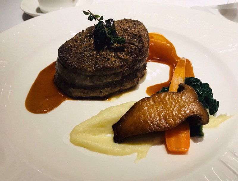 #东面 #二环 #西餐 位于华润万象城3层。推荐的当然是招牌台塑牛排全熟,牛排取自一头牛的第六和第八对肋骨,烹制香料味很浓郁,用高温烘烤一个半小时但是吃的好像卤牛肉啊hhhh肉质是很能打的;松露菲力牛排,推荐五分熟。一月份是刚好吃松露的季节,搭配着先煎后烤的牛排一起,咸香浓郁,多重口感层次分明。记得切一块之后沾一点盘边的海盐,可以让服务员小姐姐多加一点黑胡椒粉!一定要加粉,洒在牛排上就行了,加酱的话感觉会破坏整体美感。与牛排搭配的松露土豆泥一点也不腻,胡萝卜就有点偏硬了,不过还是不错的。