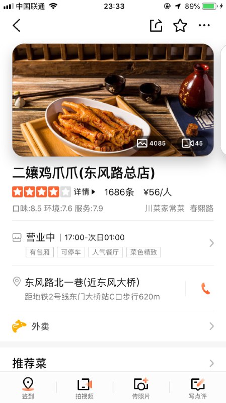 #一环 #东面 #川菜 位于一环内东风路上唯一一个过街天桥下对着的小巷子里,靠巷子路口是家工行做地标参考,比较好找。这家店当然主推的就是鸡爪爪啦!鲜香软糯、入口即化,完全不同于泡椒凤爪的劲道口感。辣味鸡爪爪辣椒后劲十足!同时也有适合不能吃辣的老板的卤鸡爪爪,除了不辣以外,鲜香口感依旧。当然这家店还有最推荐的主食就是——银丝面!实际是就是鸡汤面,但是鸡汤清亮香浓,面顺滑劲道,味道也非常不错,和鸡爪爪一起吃简直不摆了!
