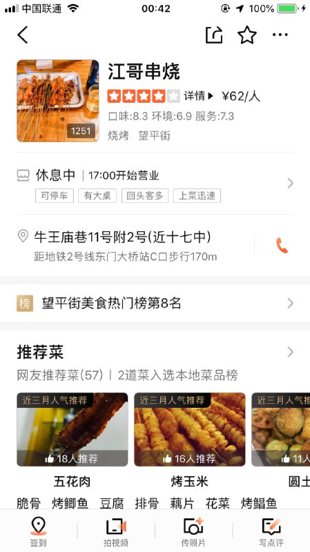 #东面 #一环 #烧烤 牛王庙巷上的临街商铺,近成都十七中后门。每天晚上开始营业到半夜的烧烤小店,基本是附近最招人喜欢的撸串铺子。推荐菜品:玉米、五花肉、掌中宝。玉米不是那种大玉米棒子,而是用签签一粒一粒穿好烤制的。串儿很入味,唯一的不足是串儿的口味略重,喜好清淡的同学可以包着生菜一起吃。